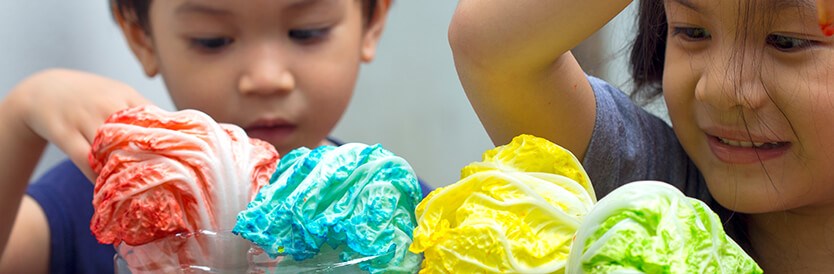 Verder experimenteren? Zet beide helften van de ingesneden steel dan eens in een andere kleur water. Laat je kind voorspellingen doen: welke kleur wordt opgenomen? Gaan de twee kleuren mengen in de bloemblaadjes of krijgt de bloem twee kleuren?