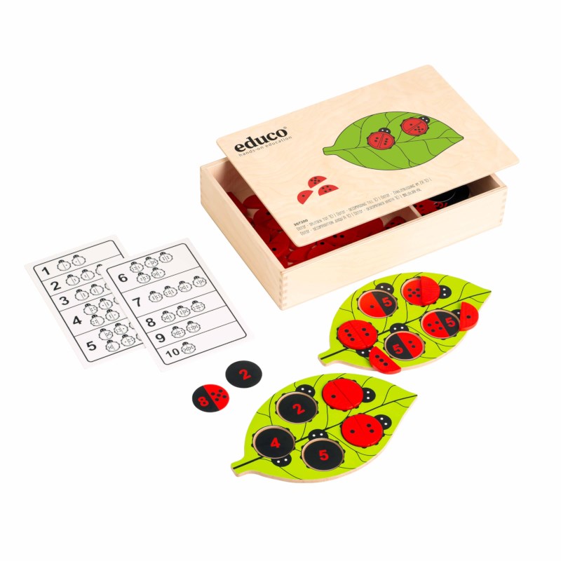 Maak jij de vleugels van de lieveheersbeestjes kloppend? Combineer stippen en maak getallen tot 10.