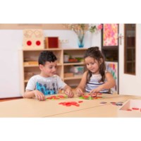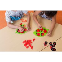 Dotsy - splitsingen 1-10 maken getalstructuren zichtbaar met stippen op de vleugels van lieveheersbeestjes. Kinderen kiezen een getalkaart en zoeken de vleugels met stippen die samen hetzelfde aantal laten zien, verdeeld in twee delen. De controlekaart toont of de combinatie klopt en laat verschillende manieren van splitsen zien. Zo krijgen kinderen inzicht in hoe aantallen zijn opgebouwd. De bladeren vormen een overzichtelijk speelveld waarop splitsingen neergelegd en gecontroleerd kunnen worden.
