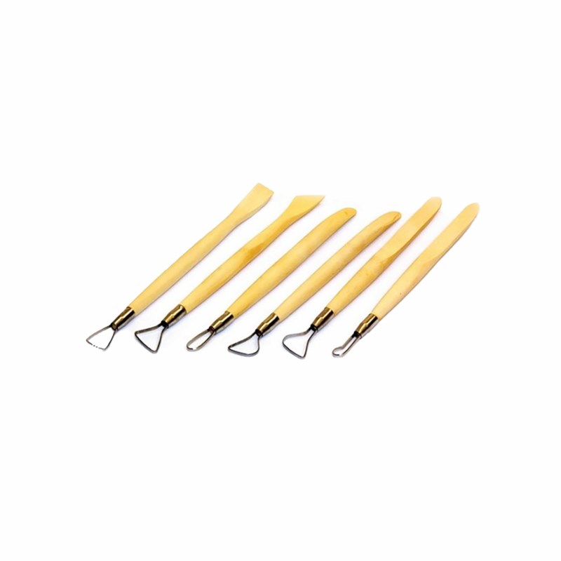 Set à 6 boetseerspatels met aan het andere uiteinde bandmirettes, 20 cm.