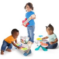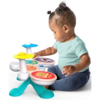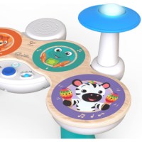 Door de drum pads licht aan te raken worden er al klanken gevormd. Een mooie manier om peuters kennis te laten maken met de wereld van muziek. Het drumstel heeft 4 verschillende standen. Elke modus heeft zijn eigen klanken en mogelijkheden. Zo maakt de drums dierengeluiden in de Playful Mode en kunnen kinderen hun eigen tonen toevoegen in de Perform Mode. Werkt op 3x AA batterijen.