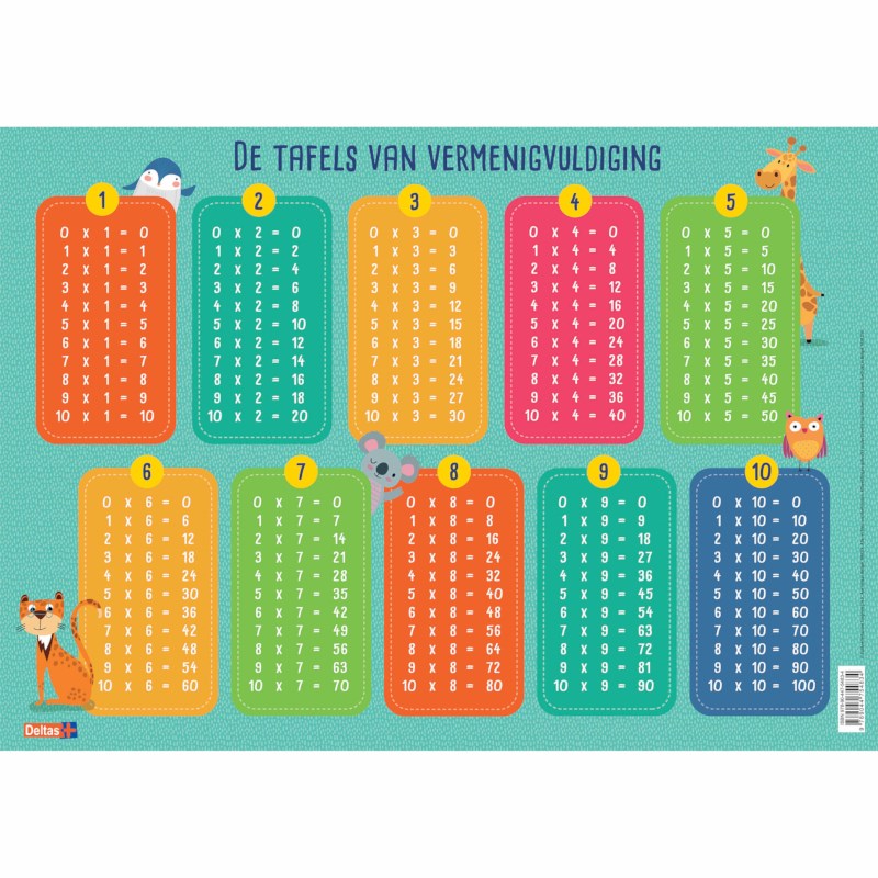 Educatieve onderlegger: de tafels van vermenigvuldigen