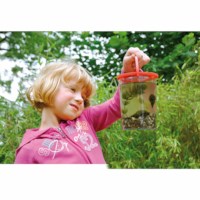 Een doorzichtige kunststof emmer met loepdeksel waarin objecten bekeken kunnen worden. Plaats een paar planten in het doorzichtige emmertje, of misschien wil je wel visjes of insecten bekijken. Dankzij de loep in het deksel zie alles nog net iets beter en dankzij het 5 milimeter raster op de bodem kan gemeten worden hoe groot het object is.