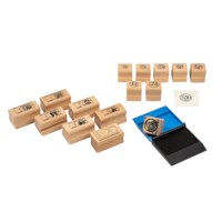 Stempelset met euromunten en eurobiljetten voor rekenoefeningen met geld.