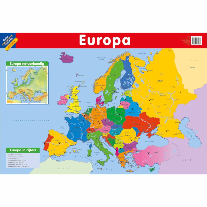 Deze gelamineerde educatieve poster bevat de kaart van Europa.