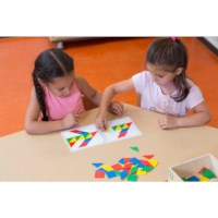 Spiegelen, draaien, leggen en bouwen. Ontdek hoe mozaïekfiguren nieuwe vormen maken.