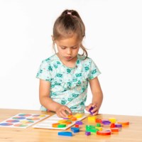 Figurovorm laat kinderen zien hoe vormen zich opdelen en weer samen een geheel maken. Door delen te combineren, ontdekken ze structuren en samenhang. Door te spelen met symmetrie en compositie, krijgen kinderen inzicht in patronen en visuele ordening. Dit versterkt hun waarneming en logisch denken.