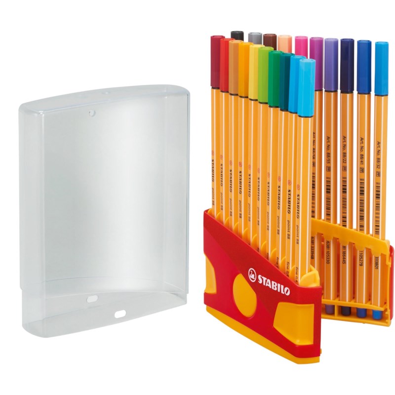 De STABILO Pen 88 is een viltstift geschikt voor hobby en professional. Kunststof etui met 20 heldere kleuren.