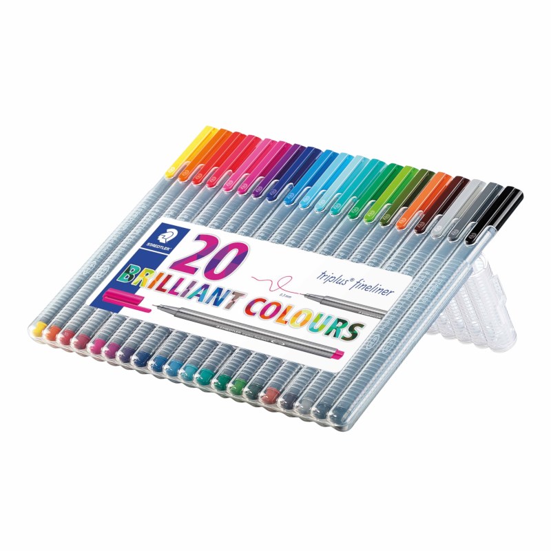 Set met 20 brilliante kleuren Staedtler triplus fineliners, puntdikte 0.3 mm.