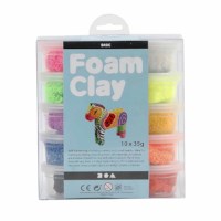 Foam Clay is een zelfhardend, mengbaar modelleermateriaal dat kleine balletjes bevat en ideaal is voor het bedekken van vele vormen en figuren. Foam Clay is klaar voor gebruik en kan met vele andere materialen gecombineerd worden. Behoudt kleur en afmeting na droging, Hecht op alle ondergronden die poreus zijn, zoals tempex, papier-maché, ongeglazuurd aardewerk.