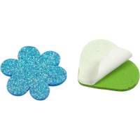 Zelfklevende, uitgestanste figuren met glitter van zacht, foamachtig materiaal. 100 assorti. Om fotolijstjes, doosjes, kaarten of andere voorwerpen mee te versieren.