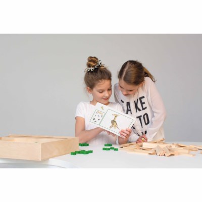 Uniek aan de standaardset Join Clips die je bij Heutink voor thuis koopt zijn de challengekaarten die je in de set aantreft. Die maken spelen met Join Clips en Kapla nog uitdagender. Lukt het jouw kind om de bouwwerken na te bouwen?