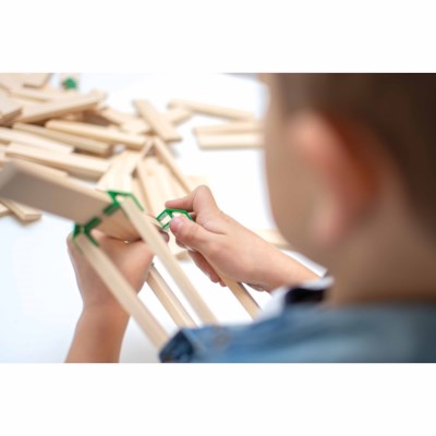 Met Join Clips bouwt je kind van Kapla vliegtuigen, dieren, boten, bruggen, robots, huizen met een schuin dak: alles wat je kind verzint valt te maken. Waar Kapla-bouwwerken eerder beperkt bleven tot opgestapelde plankjes, is de constructie met de verbindingsstukjes zo stevig dat je de bouwwerken ook kunt optillen – en dat geeft nog veel meer speelmogelijkheden.Deze foto’s geven een impressie van de mogelijheden: