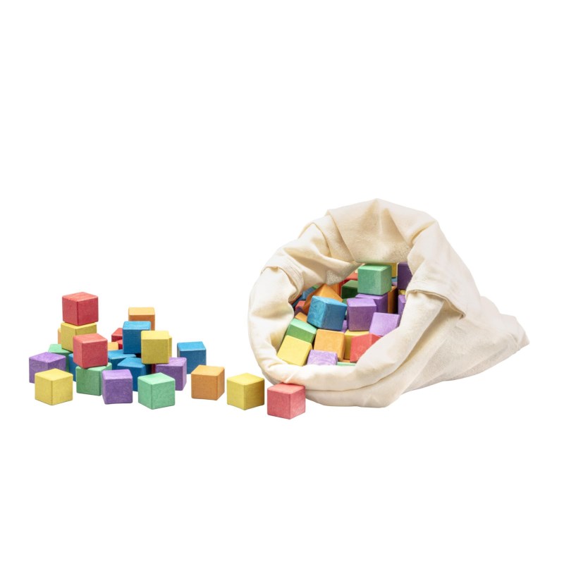 Set natuurlijke blokjes (kubussen) om geometrisch mee te bouwen.