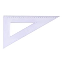 Transparante geodriehoek. De geodriehoek heeft een gele graadverdeling. Niet flexibel. Lengte 16 cm. Dikte is 0.2 cm..
