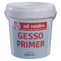 Art creation Gesso zorgt voor een goede hechting van olieverf, acrylverf en gouache. Het kan gebruikt worden op diverse ondergronden zoals schilderdoek (katoen en linnen), hout, multiplex, hardboard, papier en karton. Ook ondergronden zoals muren en beton kunnen met Gesso geprepareerd worden. ArtCreation Gesso is verkrijgbaar in een emmer van 750 ml. Door de grote opening is de emmer makkelijk in gebruik en kan direct vanuit de emmer met spatel gewerkt worden.