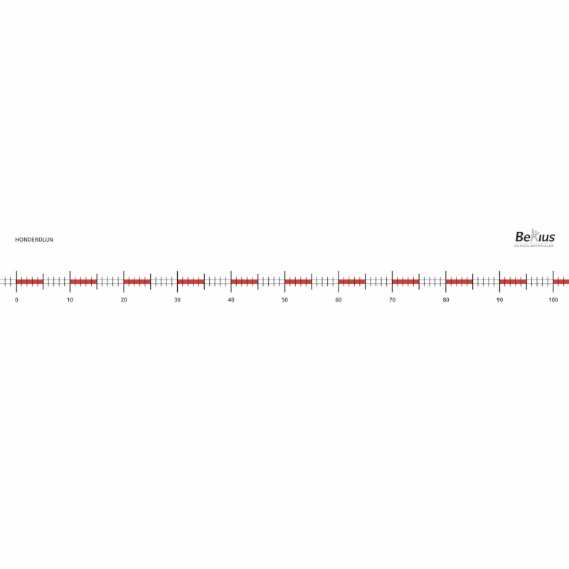 Hanteert een duidelijke 5-structuur. Met een uitwisbare stift kan je de getallen noteren en diverse oefeningen/mogelijkheden met deze getallenlijn kunnen ontstaan. De tientallen staan al op de getallenkaart gedrukt. Deze getallenlijn gaat tot 100.