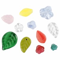 Assortiment glazen kralen, met bladeren en bloemen in mooie heldere kleuren.