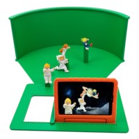 Door het compacte formaat zet je de Greenscreenbox zo op tafel en kun je meteen beginnen met het maken van je eigen greenscreenvideo’s of foto's. Gebruik LEGO, Join Clips of andere materialen om je video’s een verrassende twist te geven. Om de Greenscreenbox te kunnen gebruiken, heb je een tablet of telefoon met greenscreen app nodig. Je kunt hiervoor zowel IOS als Android gebruiken. De Toolblox zijn ontworpen in exact een zelfde kleur als de Greenscreenbox en daardoor ook onzichtbaar in foto's en video's. De set bestaat uit diverse formaten blokken die je kunt gebruiken om voorwerpen achter te verstoppen, ergens onderdoor of overheen te laten lopen of hoger in je video in beeld te plaatsen. Met behulp van de lange stroken kun je voorwerpen laten bewegen zonder dat je handen in beeld komen. Afmeting greenscreenbox: 97 x 80 cm (l x b).