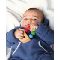 Grijpspeeltje van Grimms in de vorm van een boot met kralen in regenboogkleuren. Het grijpspeeltje heeft een totale diameter van Ø 9 cm. Het grijpspeeltje is al geschikt vanaf de geboorte.