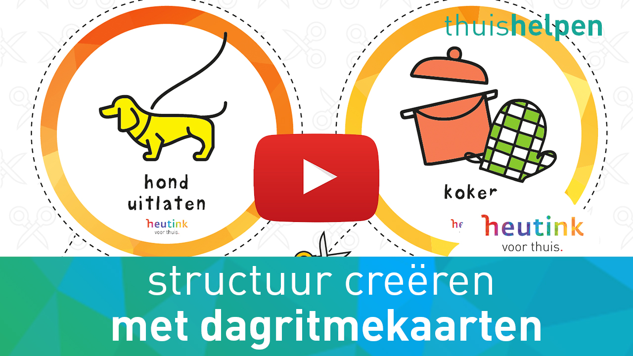 Kinderen houden van structuur en vinden het fijn als ze weten wat er hen te wachten staat. Op school gebruiken veel leerkrachten dagritmekaarten die aangeven wat er op een dag gaat plaatsvinden. Het voorkomt dat kinderen continu vragen wat ze nu toch weer gaan doen, het helpt bij taken en geeft tijdsbesef. Heutink voor Thuis ontwikkelde speciaal voor thuis een set dagritmekaarten om dezelfde structuur ook thuis te kunnen bieden.
