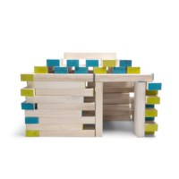 Bouw een hoge toren en haal er blokken uit zonder dat de toren omvalt. Met de blokken zijn ook talloze andere constructies te bouwen. Bevordert grove motoriek, coördinatie en geheugen.
