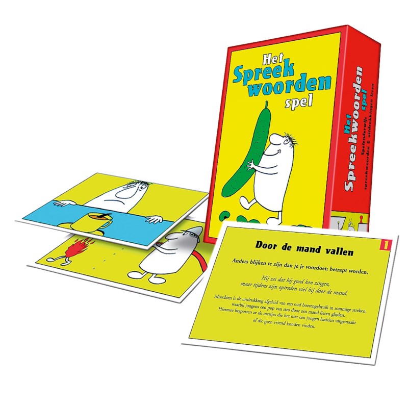 Met 78 grappig uitgebeelde spreekwoorden en uitdrukkingen. In totaal 80 kaarten. Met grappige illustraties, omschrijvingen, betekenissen, uitleg en voorbeeldzinnen. En de spelregels. Je kan het alleen oefenen, maar nog leuker is om hier samen mee aan de slag te gaan.