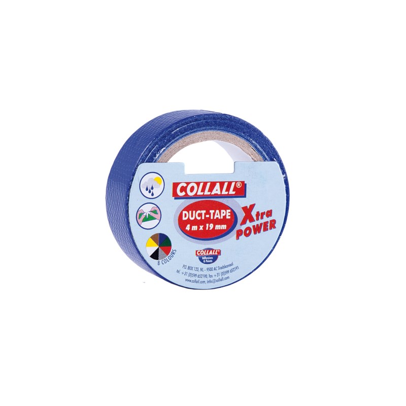 Sterke watervaste zelfklevende blauwe textieltape voor het repareren van bijvoorbeeld boekruggen of het versieren van tassen, portemonnees, armbanden etc. Tape is met de hand afscheurbaar.
