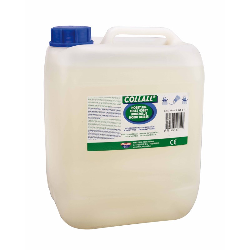 Een kindvriendelijke, heldere hobbylijm op waterbasis. Lijmt moeiteloos papier, karton, vilt, kurk, enz. Makkelijk om mee te werken door de goed afsluitbare draaidop en natuurlijk koud uitwasbaar. Jerrycan à 5 liter.