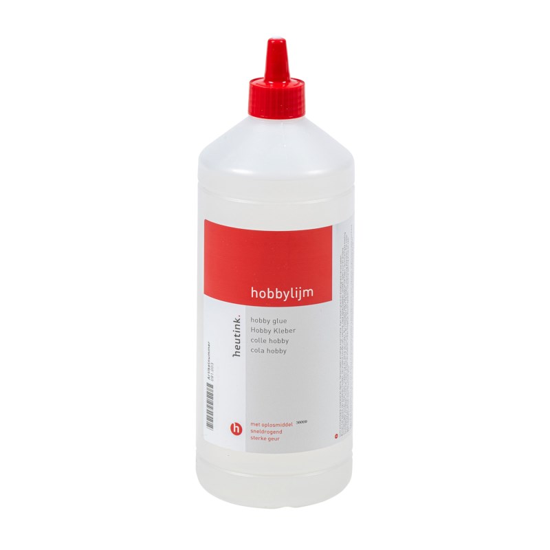 Heutink hobbylijm op oplosmiddelbasis. Flacon à 1 liter.