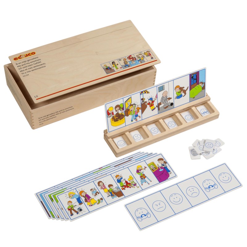 Ik en mijn gevoelens helpt kinderen emoties te herkennen, benoemen en op de juiste manier te koppelen. Ze kiezen een situatie, herkennen de emotie en schuiven het juiste gezichtje op zijn plek. Door emoties te observeren en te bespreken, leren kinderen gevoelens te begrijpen en onder woorden te brengen. Dit versterkt empathie en helpt bij het ontwikkelen van sociaal-emotionele vaardigheden.