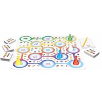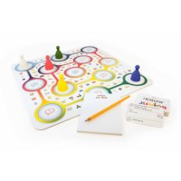 Inclusief: speelbord met 400 kaarten (Nederlandstalig), 5 grote speelstukken, notitieblok, potlood en spelregels.