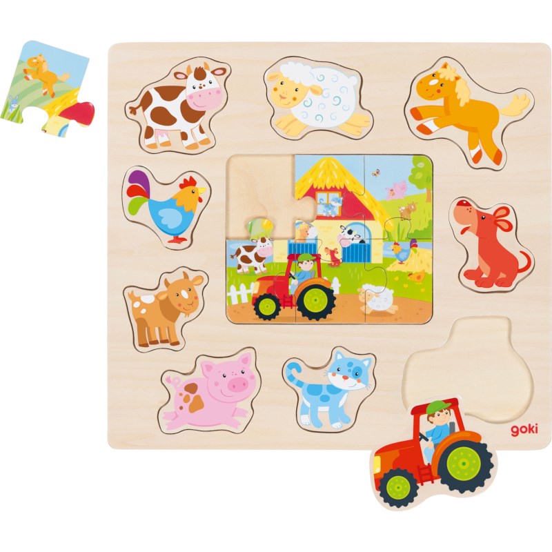 Inlegpuzzel | Goki | 15 stukjes | Boerderij