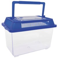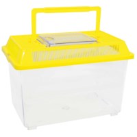 Een set van 2 doorzichtige kunststof insectenhuizen, inclusief deksel met doorzichtig venster, luchtgaten en handvat. De insectenhuizen zijn geschikt voor het bekijken en vervoeren van insecten, kleine dieren of dieren die in het water leven. Op het deksel zit een doorzichtig venster dat geopend kan worden, luchtroosters en een handvat. Wordt in assorti kleuren geleverd.