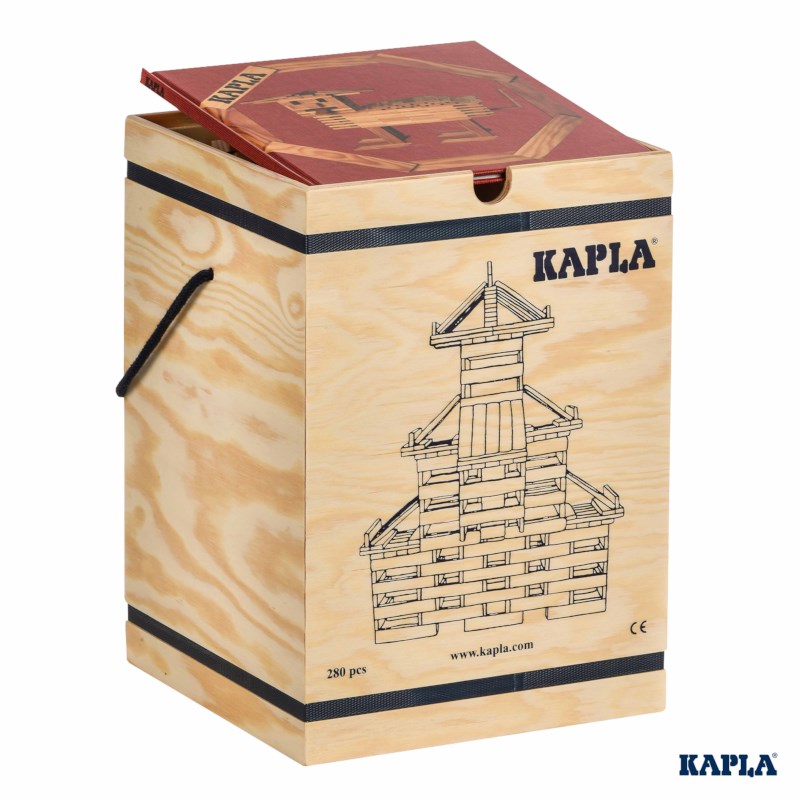 Kapla, een echte klassieker die je gewoon in huis moet hebben. De 'kabouterplankjes' zijn van massief grenenhout, formaat 12 x 2,4 x 0,8 cm (l x b x h). De plankjes leiden tot een constructie in de ruimte met een structuur van verbazingwekkende stabiliteit. Kapla bevordert de handigheid, gevoel voor evenwicht, concentratie en inventiviteit.