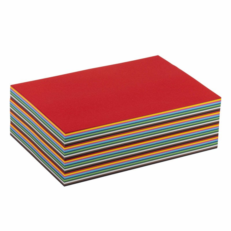 Gekleurd dun karton op A4 formaat, pak met 10 kleuren.
