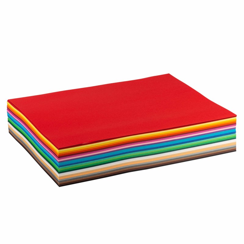 Gekleurd karton, 24 kleuren assorti + wit. Pak à 250 vel. Formaat: 35 x 50 cm (b x l).