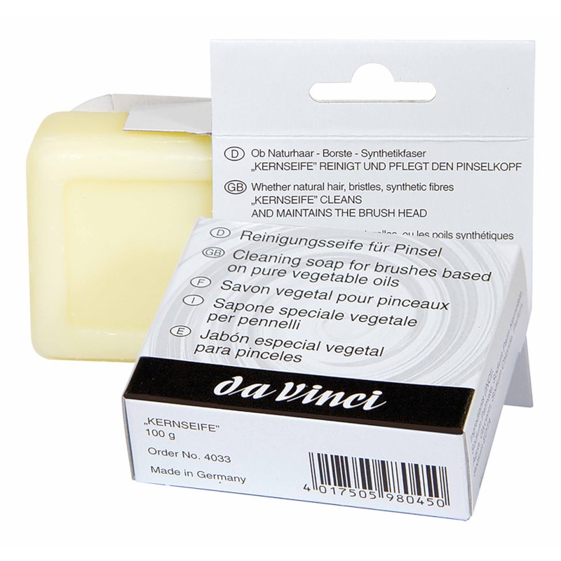 Da Vinci kernzeep is een reinigingsmiddel op basis van plantaardige en dierlijke vetten. Waterverdunbare verven kunnen direkt met deze zeep schoongemaakt worden. Bij olie- en alkydverven eerst terpentine gebruiken.