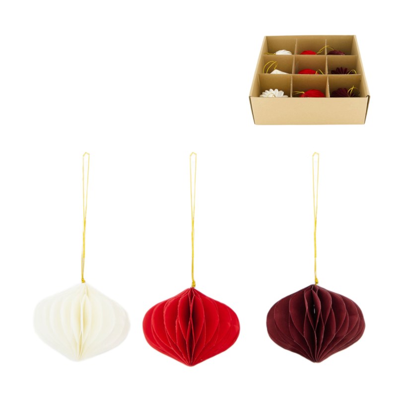 Kerstballen ovaal | Papier | Rood/wit mix | 9 stuks