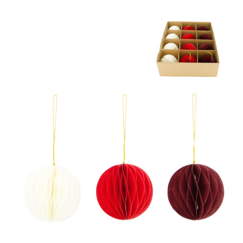Kerstballen rond | Papier | Rood/wit mix | 9 stuks