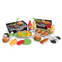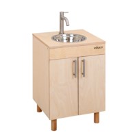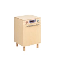 speelervaring. De bovenkant heeft een schap en haken voor kookgerei, zodat kinderen hun keukenset overzichtelijk kunnen organiseren. Met de schuifdeur boven het werkblad kunnen keukenspullen zichtbaar of uit het zicht worden geplaatst. Dankzij de doorkijk kunnen kinderen met elkaar communiceren terwijl ze spelen.