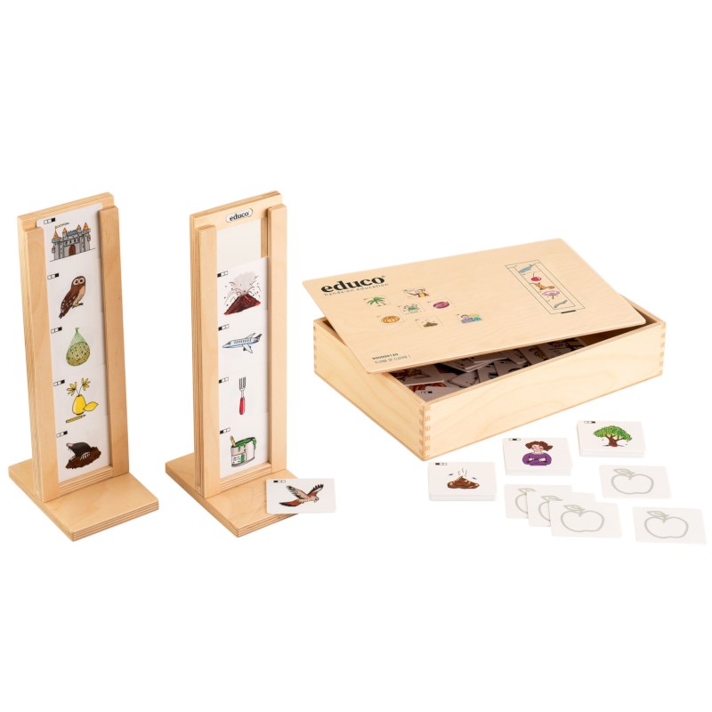 passende klanken te ordenen. Kinderen luisteren, vergelijken de klanken en stapelen kaarten met dezelfde klank in de spelstandaard. Zo ontstaat een gestructureerd overzicht van klankpatronen. Het spel versterkt fonemisch bewustzijn en stimuleert het analyseren, categoriseren en herkennen van klankovereenkomsten. Dit helpt bij de taalontwikkeling en legt een stevige basis voor beginnende geletterdheid.