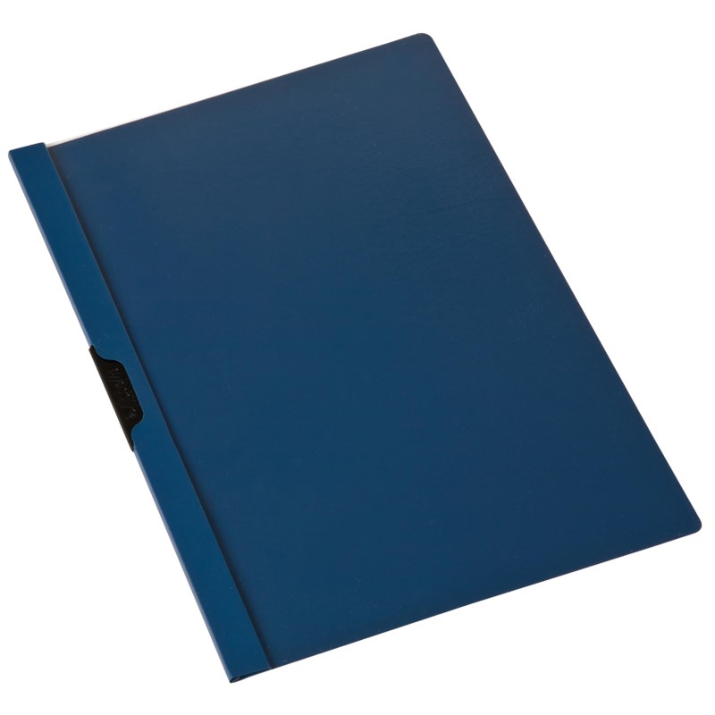 Blauwe presentatiemap/clipmap - doorzichtige voorzijde met aan de binnenzijde een clip.