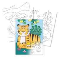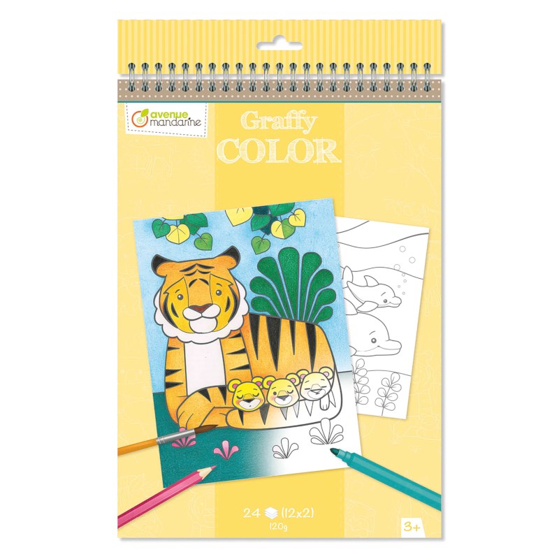 Een spiraal kleurboek van stevige kwaliteit met 12 tekeningen van dieren moeder en kind, die 2 keer voorkomen in het kleurboek en in te kleuren zijn met kleurpotloden, ecoline brush stiften of aquarelpotloden.