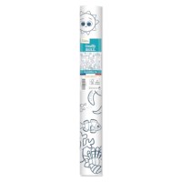 Een tekening op rol welke om de 50 cm wordt herhaald, in totaal dus 10 keer dezelfde kleurplaat op een rol van 5 meter.