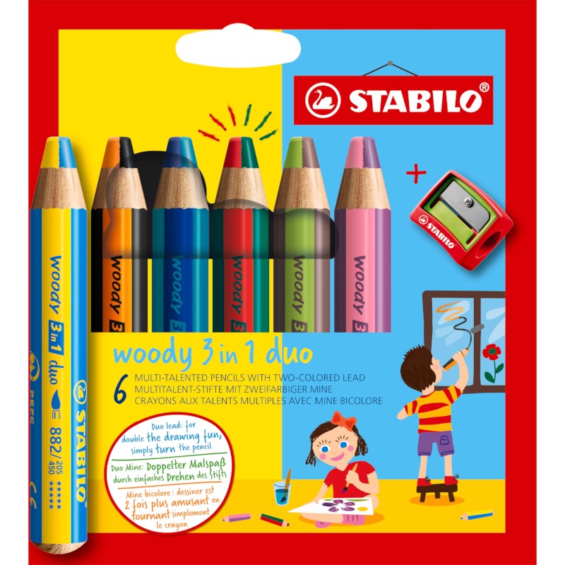 Kleurpotloden | STABILO | Woody 3 in 1 duo | 6 kleuren