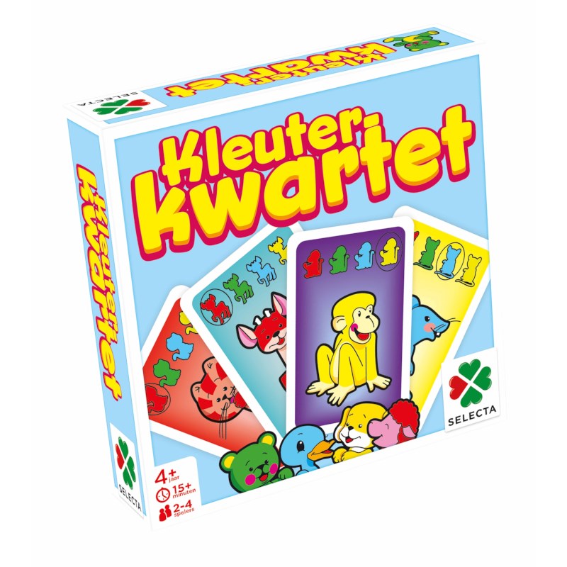 Een kwartet voor de allerkleinsten. Dit is een leuk en herkenbaar geïllustreerd kwartetspel, speciaal gemaakt voor de allerkleinsten. Boven aan de kaarten staan 4 duidelijke afbeeldingen van de dieren. Speel jouw dieren bij elkaar en win! Het minimum aantal spelers is 2, met een maximum van 4 spelers. Dit kwartetspel garandeert een minimum speeltijd van 15 minuten.