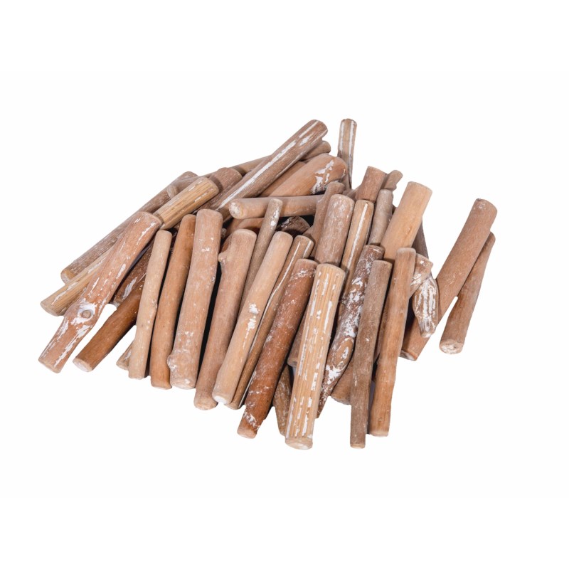 Lange en dikke knutselhoutjes of drijfhout lengte ongeveer 7 cm.