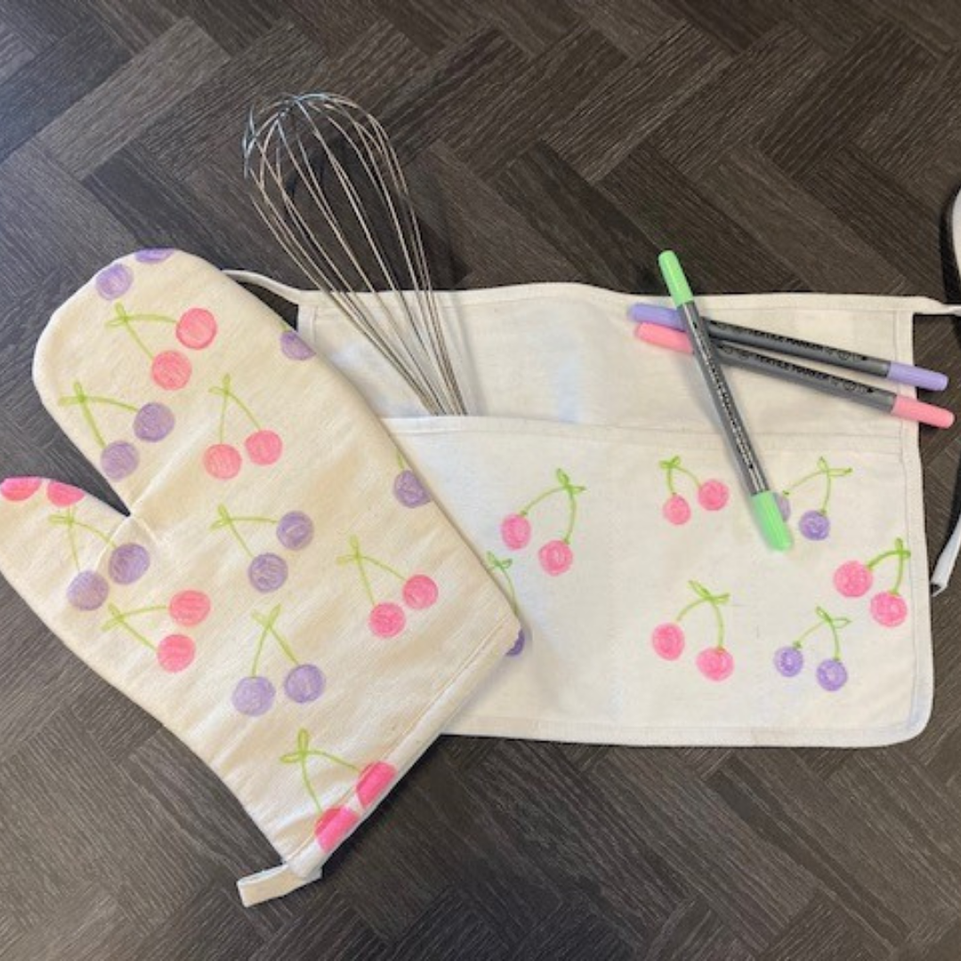 Schort en ovenwanten versieren