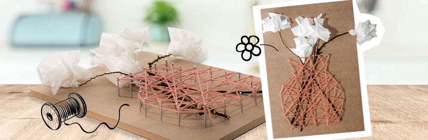 Een zelfgemaakt cadeautje krijgen is altijd leuk. Met draad en spijkertjes maak je heel gemakkelijk dit leuke vaasje bloemen voor aan de muur.